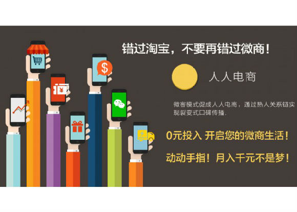 在進(jìn)入移動(dòng)互聯(lián)網(wǎng)時(shí)代,每個(gè)傳統(tǒng)企業(yè)都要利用移動(dòng)互聯(lián)網(wǎng)的工具,特別是微信這個(gè)強(qiáng)關(guān)系社交平臺(tái)進(jìn)行營(yíng)銷,這樣可以達(dá)到事半功倍的作用。線上微信分銷體系的建立可以借助微信的社交鏈以及公眾平臺(tái)的合力實(shí)現(xiàn)分銷體系的裂變,能量將會(huì)超乎想象,而這也正是微信分銷電商模式區(qū)別于傳統(tǒng)電商以及傳統(tǒng)分銷體系給我們帶來(lái)的無(wú)限想象空間。個(gè)人認(rèn)為微信分銷是微電商的升級(jí)模式,將社交玩到極致,也將社交的商業(yè)價(jià)值放大到最大化,社交關(guān)系轉(zhuǎn)化銷售流量也被微信分銷系統(tǒng)推至極限邊界。不過(guò)未來(lái)或許還有更多更大的玩法,我們不妨拭目以待。微信分銷與傳統(tǒng)分銷體系不發(fā)生競(jìng)爭(zhēng)關(guān)系,而是幫助其融入微信商業(yè)生態(tài)。微信分銷的神奇之處在于有機(jī)會(huì)發(fā)揮社交網(wǎng)絡(luò)平臺(tái)中的個(gè)人(朋友圈)單元和媒介(公眾號(hào))單元潛在的電商價(jià)值,重塑微信商業(yè)化進(jìn)程。對(duì)于,已有相對(duì)成熟、完整的分銷體系的傳統(tǒng)企業(yè)來(lái)講,第三方開發(fā)商只是為其提供更適合微信業(yè)態(tài)的分銷體系,降低進(jìn)入微信電商的準(zhǔn)入門檻。另外,若能在微信基礎(chǔ)上打通分銷體系的話,意味著微信淘金機(jī)會(huì)開始向越來(lái)越多的普通用戶們開放了。