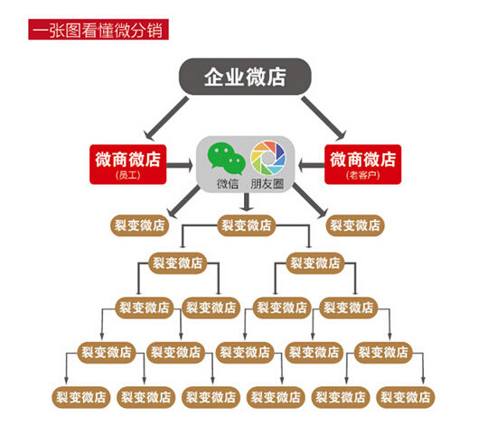 在進(jìn)入移動(dòng)互聯(lián)網(wǎng)時(shí)代,每個(gè)傳統(tǒng)企業(yè)都要利用移動(dòng)互聯(lián)網(wǎng)的工具,特別是微信這個(gè)強(qiáng)關(guān)系社交平臺(tái)進(jìn)行營(yíng)銷,這樣可以達(dá)到事半功倍的作用。線上微信分銷體系的建立可以借助微信的社交鏈以及公眾平臺(tái)的合力實(shí)現(xiàn)分銷體系的裂變,能量將會(huì)超乎想象,而這也正是微信分銷電商模式區(qū)別于傳統(tǒng)電商以及傳統(tǒng)分銷體系給我們帶來(lái)的無(wú)限想象空間。個(gè)人認(rèn)為微信分銷是微電商的升級(jí)模式,將社交玩到極致,也將社交的商業(yè)價(jià)值放大到最大化,社交關(guān)系轉(zhuǎn)化銷售流量也被微信分銷系統(tǒng)推至極限邊界。不過(guò)未來(lái)或許還有更多更大的玩法,我們不妨拭目以待。微信分銷與傳統(tǒng)分銷體系不發(fā)生競(jìng)爭(zhēng)關(guān)系,而是幫助其融入微信商業(yè)生態(tài)。微信分銷的神奇之處在于有機(jī)會(huì)發(fā)揮社交網(wǎng)絡(luò)平臺(tái)中的個(gè)人(朋友圈)單元和媒介(公眾號(hào))單元潛在的電商價(jià)值,重塑微信商業(yè)化進(jìn)程。對(duì)于,已有相對(duì)成熟、完整的分銷體系的傳統(tǒng)企業(yè)來(lái)講,第三方開發(fā)商只是為其提供更適合微信業(yè)態(tài)的分銷體系,降低進(jìn)入微信電商的準(zhǔn)入門檻。另外,若能在微信基礎(chǔ)上打通分銷體系的話,意味著微信淘金機(jī)會(huì)開始向越來(lái)越多的普通用戶們開放了。